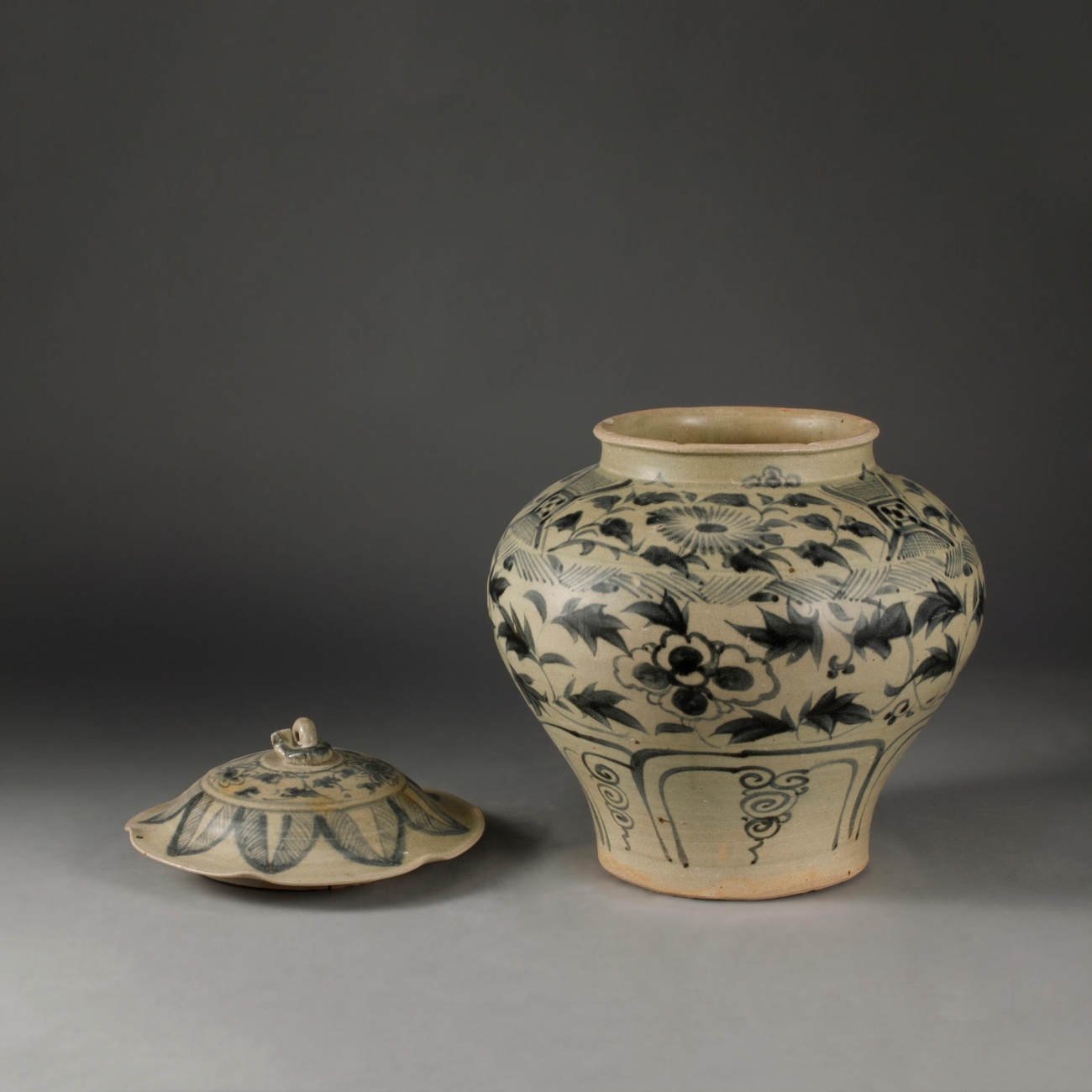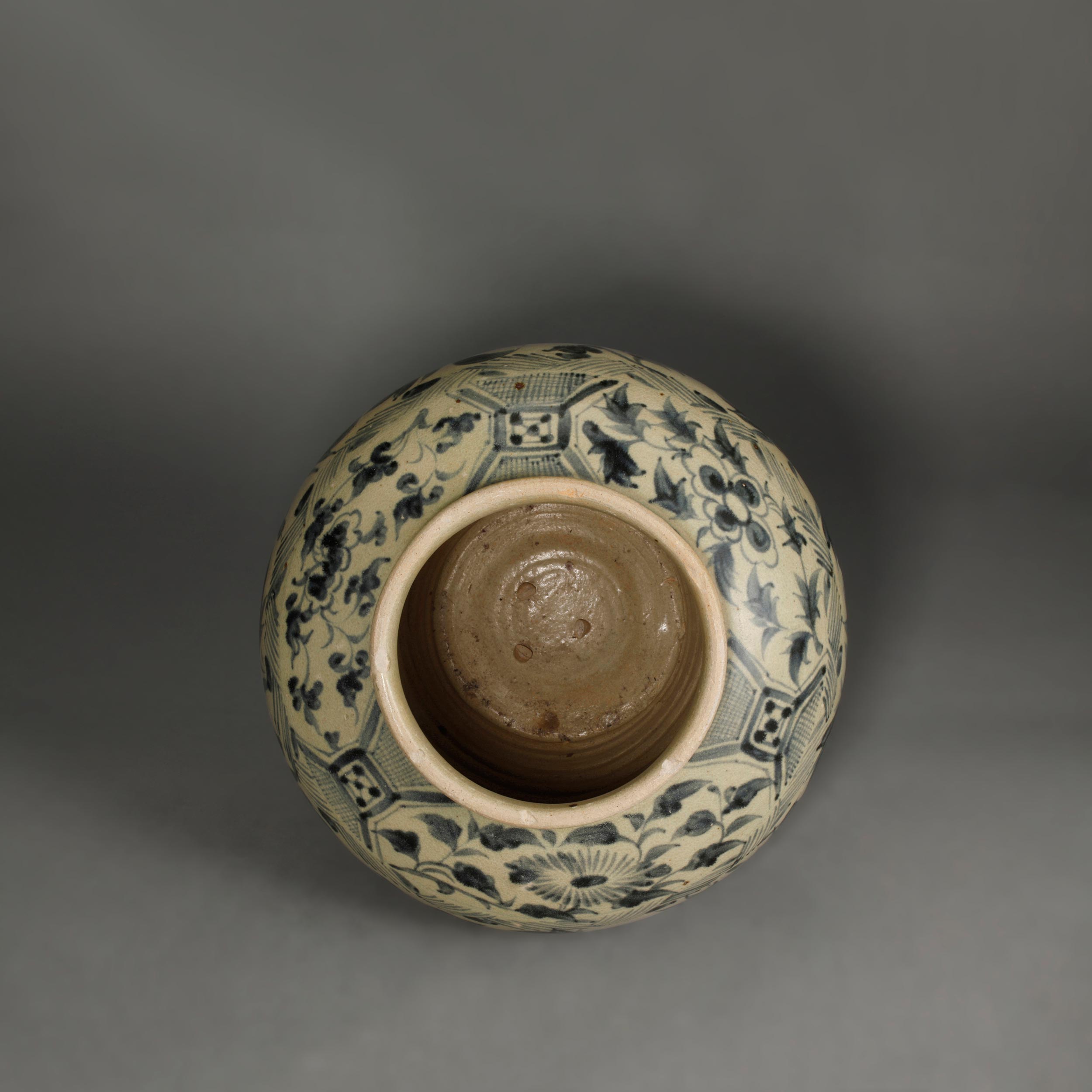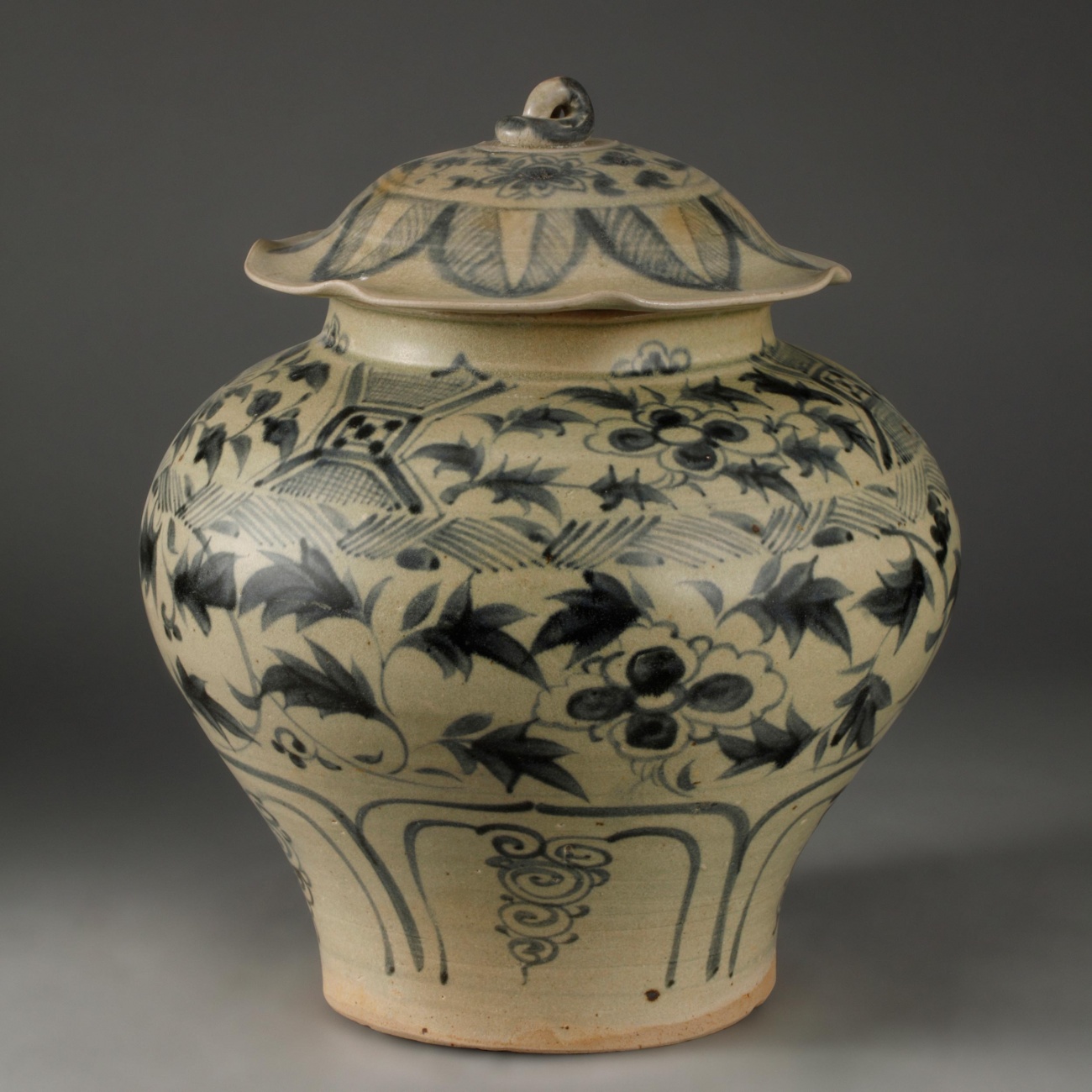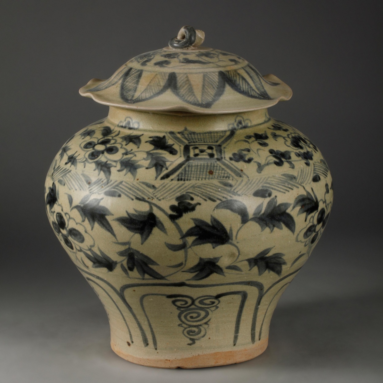 藏品名称:玉溪窑青花缠枝花卉纹盖罐